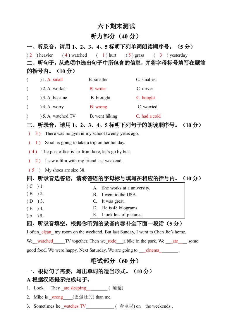 当前位置: 首页小学资源小学六年级正文 六年级英语下册六下期末卷答案_共5页 小学六年级 5 天前 0 0 5 以上为部分内容预览,如需源文档请登录您的会员账号进行下载! 声明:本站所有文章,如无特殊说明或标注,均为本站原创发布。任何个人或组织,在未征得本站同意时,禁止复制、盗用、采集、发布本站内容到任何网站、书籍等各类媒体平台。如若本站内容侵犯了原著者的合法权益,可联系我们进行处理。 尚学资源永久会员 打赏 收藏 海报 链接