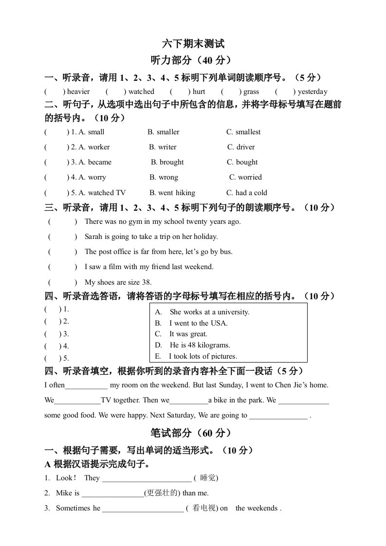 当前位置: 首页小学资源小学六年级正文 六年级英语下册六下期末卷_共4页 小学六年级 5 天前 0 0 5 以上为部分内容预览,如需源文档请登录您的会员账号进行下载! 声明:本站所有文章,如无特殊说明或标注,均为本站原创发布。任何个人或组织,在未征得本站同意时,禁止复制、盗用、采集、发布本站内容到任何网站、书籍等各类媒体平台。如若本站内容侵犯了原著者的合法权益,可联系我们进行处理。 尚学资源永久会员 打赏 收藏 海报 链接