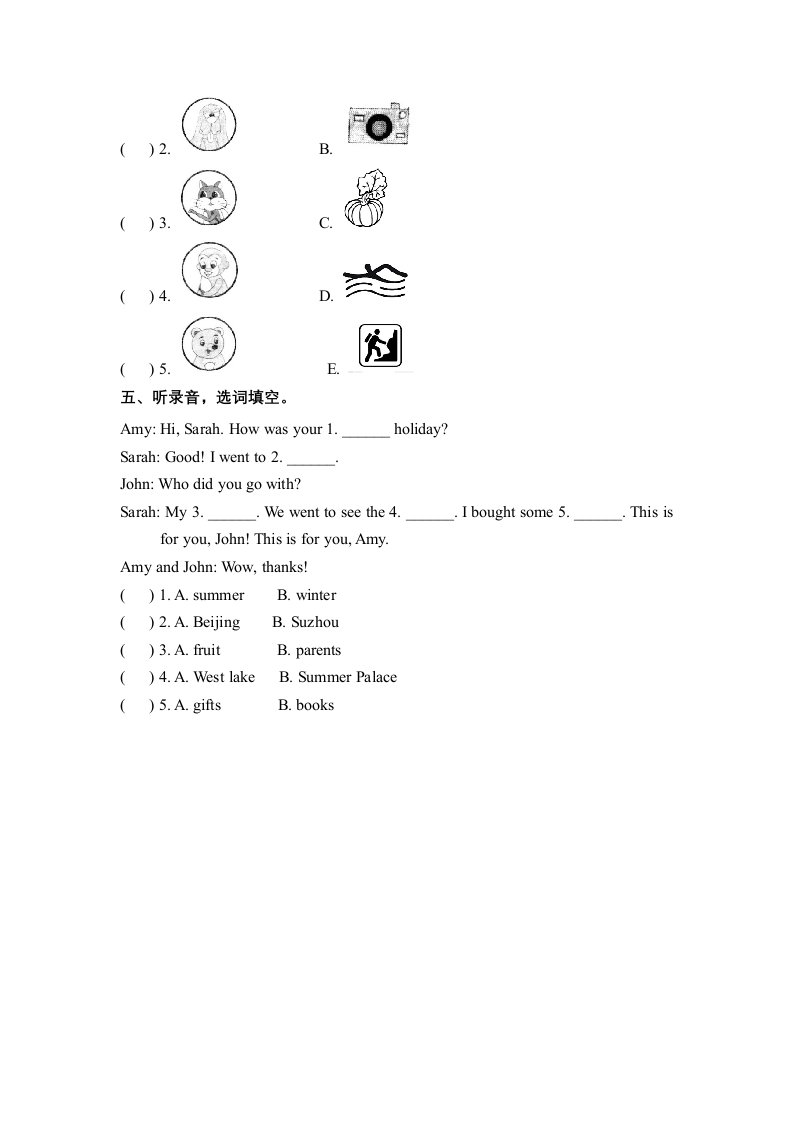 当前位置: 首页小学资源小学六年级正文 六年级英语下册Unit3WheredidyougoPartB同步听力训练人教PEP版_共4页 小学六年级 5 天前 0 0 5 以上为部分内容预览,如需源文档请登录您的会员账号进行下载! 声明:本站所有文章,如无特殊说明或标注,均为本站原创发布。任何个人或组织,在未征得本站同意时,禁止复制、盗用、采集、发布本站内容到任何网站、书籍等各类媒体平台。如若本站内容侵犯了原著者的合法权益,可联系我们进行处理。 尚学资源永久会员 打赏 收藏 海报 链接
