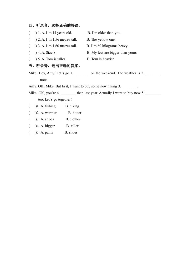当前位置: 首页小学资源小学六年级正文 六年级英语下册同步听力训练-Unit1HowtallareyouPartB人教PEP版_共4页 小学六年级 5 天前 0 0 5 以上为部分内容预览,如需源文档请登录您的会员账号进行下载! 声明:本站所有文章,如无特殊说明或标注,均为本站原创发布。任何个人或组织,在未征得本站同意时,禁止复制、盗用、采集、发布本站内容到任何网站、书籍等各类媒体平台。如若本站内容侵犯了原著者的合法权益,可联系我们进行处理。 尚学资源永久会员 打赏 收藏 海报 链接