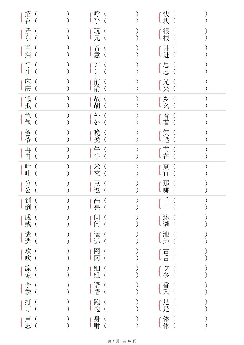 当前位置: 首页小学资源小学一年级正文 25春一年级语文下册形近字专项练习(含答案16页)_共16页 小学一年级 2 周前 0 0 10 以上为部分内容预览,如需源文档请登录您的会员账号进行下载! 声明:本站所有文章,如无特殊说明或标注,均为本站原创发布。任何个人或组织,在未征得本站同意时,禁止复制、盗用、采集、发布本站内容到任何网站、书籍等各类媒体平台。如若本站内容侵犯了原著者的合法权益,可联系我们进行处理。 尚学资源永久会员 打赏 收藏 海报 链接