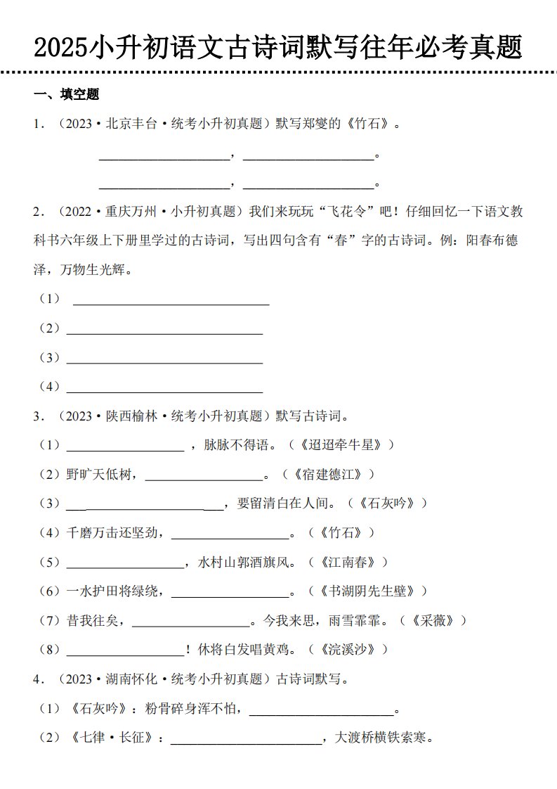 当前位置: 首页小学资源小升初正文 小升初语文古诗词默写往年必考真题_共19页 小升初 5 天前 0 0 10 以上为部分内容预览,如需源文档请登录您的会员账号进行下载! 声明:本站所有文章,如无特殊说明或标注,均为本站原创发布。任何个人或组织,在未征得本站同意时,禁止复制、盗用、采集、发布本站内容到任何网站、书籍等各类媒体平台。如若本站内容侵犯了原著者的合法权益,可联系我们进行处理。 尚学资源永久会员 打赏 收藏 海报 链接