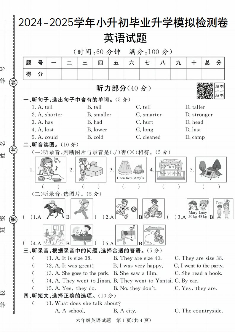 24-25小升初《英语期末模拟卷》人教版_共5页
