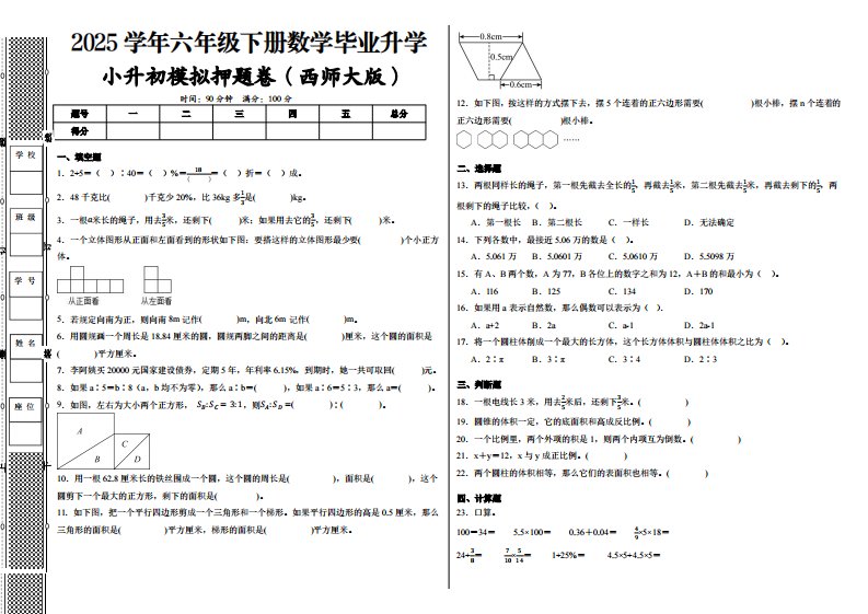 当前位置: 首页小学资源小升初正文 2024-2025学年西师大六年级下册小升初全真模拟数学试卷(提高03)_共12页 小升初 5 天前 0 0 10 以上为部分内容预览,如需源文档请登录您的会员账号进行下载! 声明:本站所有文章,如无特殊说明或标注,均为本站原创发布。任何个人或组织,在未征得本站同意时,禁止复制、盗用、采集、发布本站内容到任何网站、书籍等各类媒体平台。如若本站内容侵犯了原著者的合法权益,可联系我们进行处理。 尚学资源永久会员 打赏 收藏 海报 链接