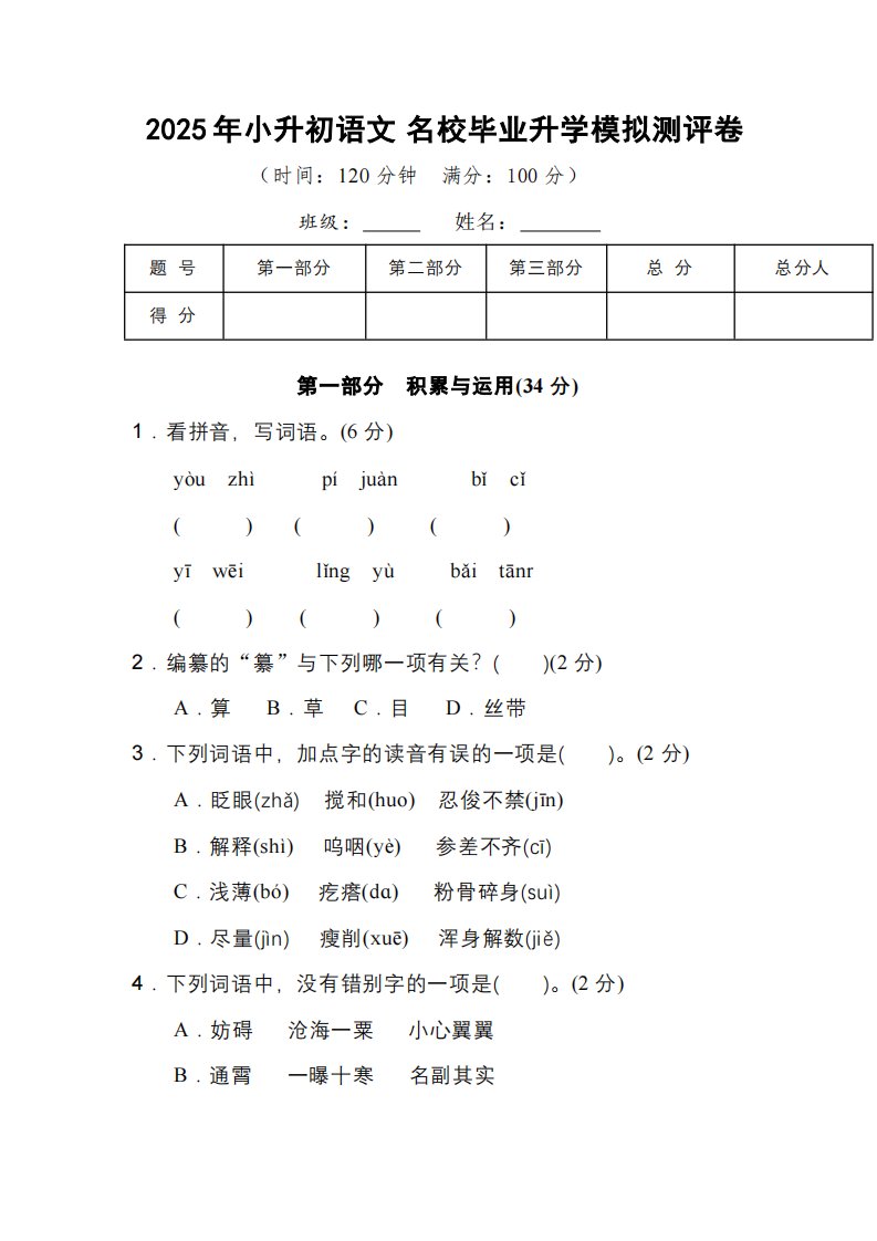 当前位置: 首页小学资源小升初正文 2025年小升初语文重点小学毕业升学全真模拟卷(三)14页_共14页 小升初 5 天前 0 0 10 以上为部分内容预览,如需源文档请登录您的会员账号进行下载! 声明:本站所有文章,如无特殊说明或标注,均为本站原创发布。任何个人或组织,在未征得本站同意时,禁止复制、盗用、采集、发布本站内容到任何网站、书籍等各类媒体平台。如若本站内容侵犯了原著者的合法权益,可联系我们进行处理。 尚学资源永久会员 打赏 收藏 海报 链接