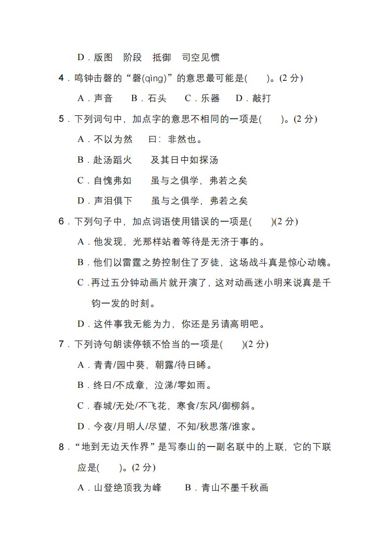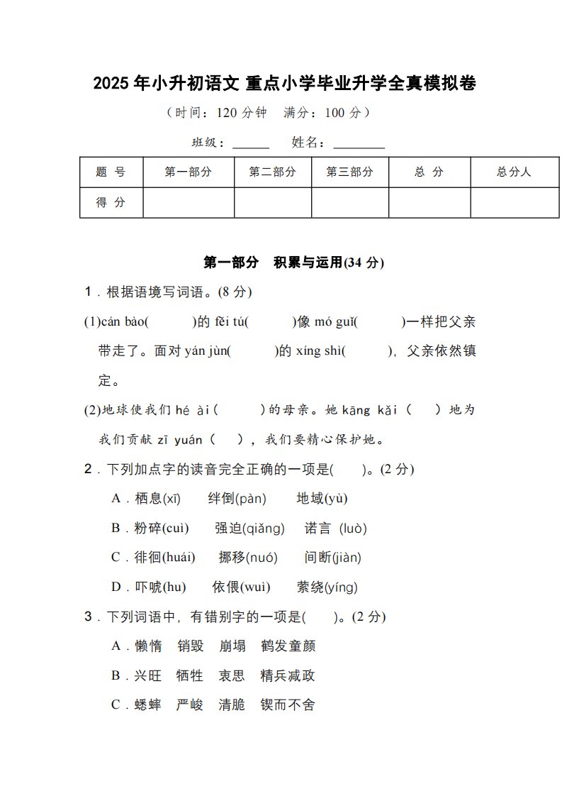 当前位置: 首页小学资源小升初正文 2025年小升初语文重点小学毕业升学全真模拟卷(一)13页_共13页 小升初 5 天前 0 0 10 以上为部分内容预览,如需源文档请登录您的会员账号进行下载! 声明:本站所有文章,如无特殊说明或标注,均为本站原创发布。任何个人或组织,在未征得本站同意时,禁止复制、盗用、采集、发布本站内容到任何网站、书籍等各类媒体平台。如若本站内容侵犯了原著者的合法权益,可联系我们进行处理。 尚学资源永久会员 打赏 收藏 海报 链接