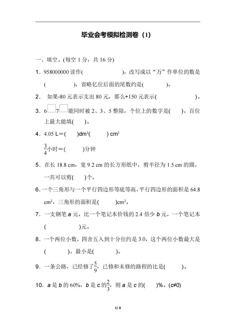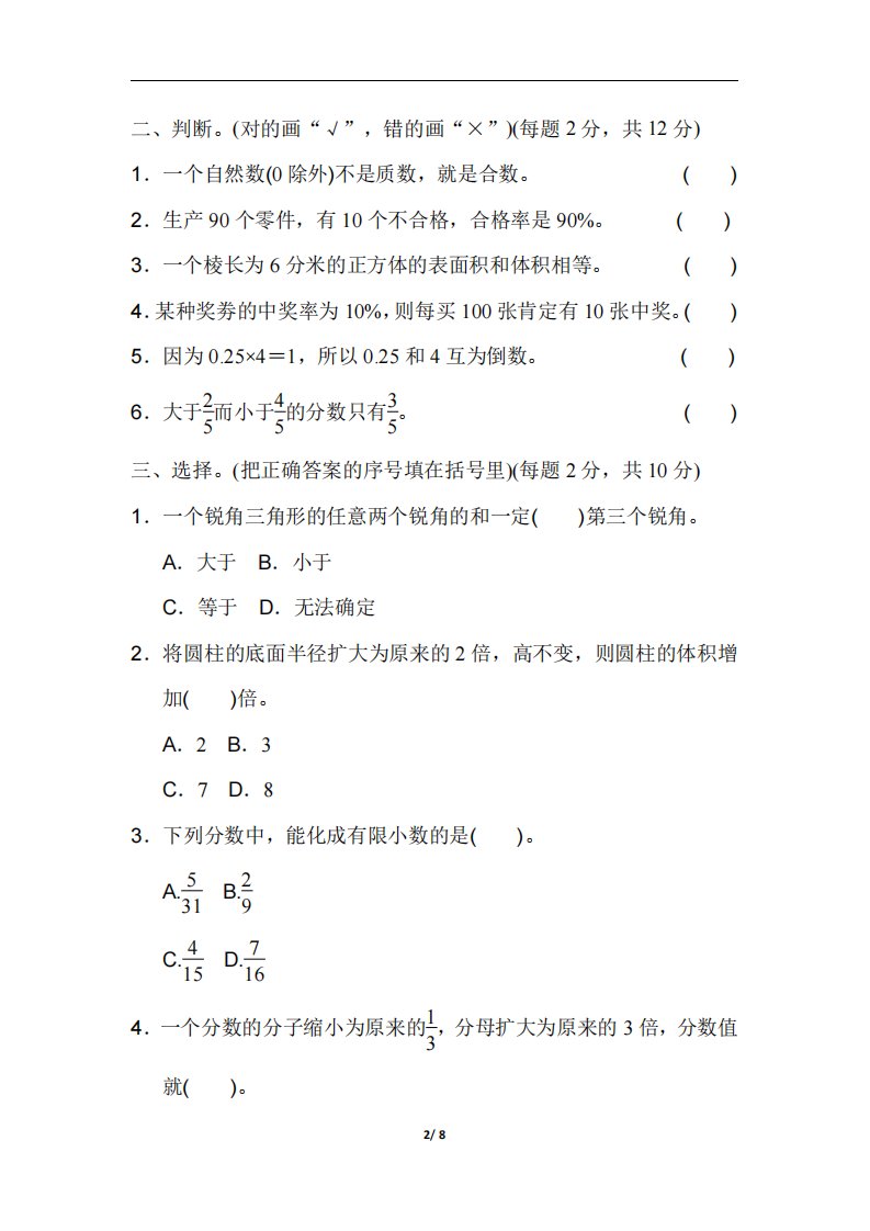 当前位置: 首页小学资源小升初正文 六(下)人教版数学毕业会考模拟检测卷(1)_共8页 小升初 4 天前 0 0 5 以上为部分内容预览,如需源文档请登录您的会员账号进行下载! 声明:本站所有文章,如无特殊说明或标注,均为本站原创发布。任何个人或组织,在未征得本站同意时,禁止复制、盗用、采集、发布本站内容到任何网站、书籍等各类媒体平台。如若本站内容侵犯了原著者的合法权益,可联系我们进行处理。 尚学资源永久会员 打赏 收藏 海报 链接