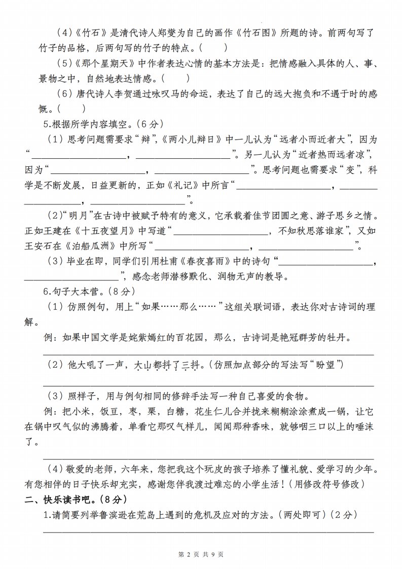当前位置: 首页小学资源小升初正文 语文-2023-2024学年小升初语文学情检测全真模拟卷(四)_共13页 小升初 4 天前 0 0 10 以上为部分内容预览,如需源文档请登录您的会员账号进行下载! 声明:本站所有文章,如无特殊说明或标注,均为本站原创发布。任何个人或组织,在未征得本站同意时,禁止复制、盗用、采集、发布本站内容到任何网站、书籍等各类媒体平台。如若本站内容侵犯了原著者的合法权益,可联系我们进行处理。 尚学资源永久会员 打赏 收藏 海报 链接