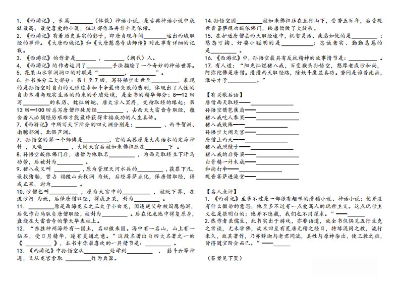 当前位置: 首页小学资源幼小衔接正文 《西游记》知识汇总_共3页 幼小衔接 5 天前 0 0 5 以上为部分内容预览,如需源文档请登录您的会员账号进行下载! 声明:本站所有文章,如无特殊说明或标注,均为本站原创发布。任何个人或组织,在未征得本站同意时,禁止复制、盗用、采集、发布本站内容到任何网站、书籍等各类媒体平台。如若本站内容侵犯了原著者的合法权益,可联系我们进行处理。 尚学资源永久会员 打赏 收藏 海报 链接