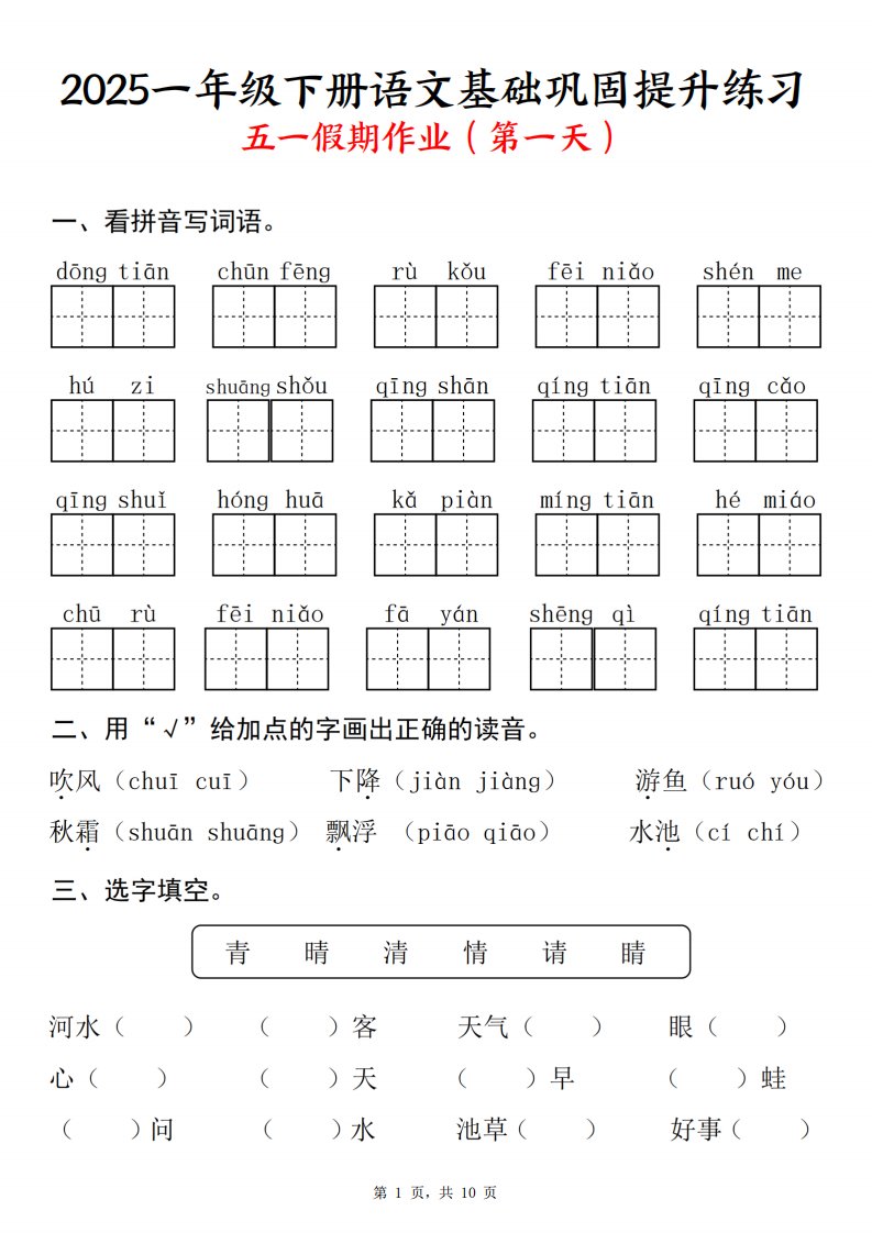 当前位置: 首页小学资源小学一年级正文 2025一下语文基础巩固提升练习(五一假期作业)10页_共10页 小学一年级 2 周前 0 0 5 以上为部分内容预览,如需源文档请登录您的会员账号进行下载! 声明:本站所有文章,如无特殊说明或标注,均为本站原创发布。任何个人或组织,在未征得本站同意时,禁止复制、盗用、采集、发布本站内容到任何网站、书籍等各类媒体平台。如若本站内容侵犯了原著者的合法权益,可联系我们进行处理。 尚学资源永久会员 打赏 收藏 海报 链接