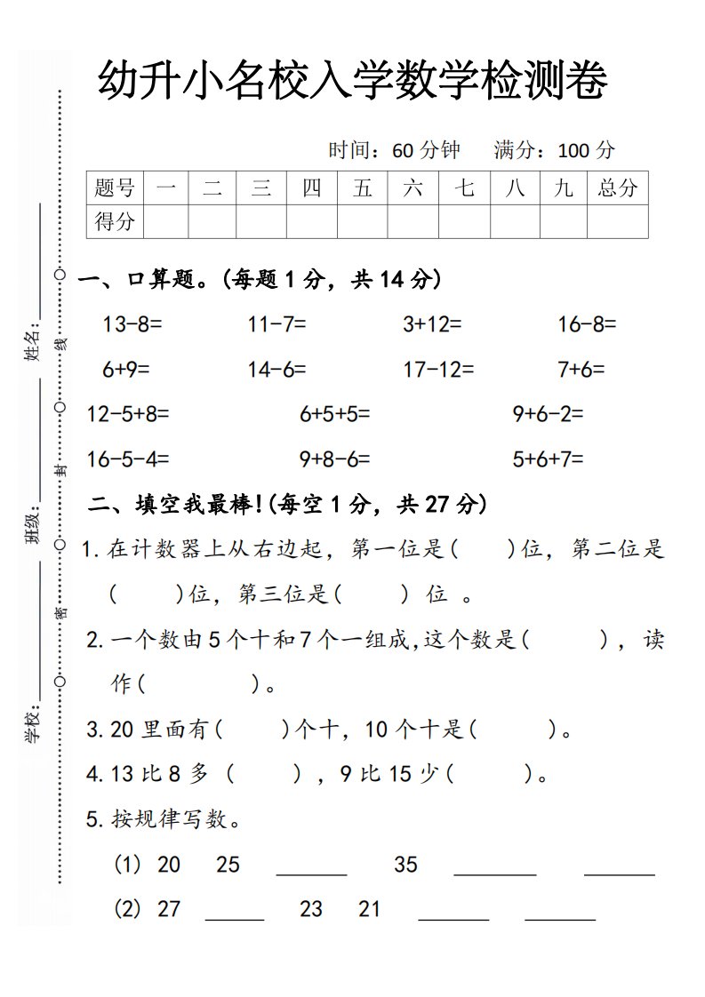当前位置: 首页小学资源幼小衔接正文 【数学】幼升小名校入学数学检测卷5_共4页 幼小衔接 4 天前 0 0 5 以上为部分内容预览,如需源文档请登录您的会员账号进行下载! 声明:本站所有文章,如无特殊说明或标注,均为本站原创发布。任何个人或组织,在未征得本站同意时,禁止复制、盗用、采集、发布本站内容到任何网站、书籍等各类媒体平台。如若本站内容侵犯了原著者的合法权益,可联系我们进行处理。 尚学资源永久会员 打赏 收藏 海报 链接