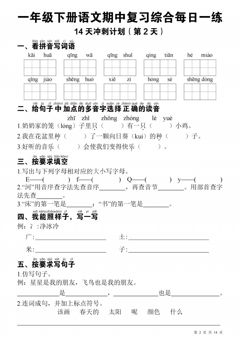 当前位置: 首页小学资源小学一年级正文 一下语文期中每日一练_共23页 小学一年级 2 周前 0 0 15 以上为部分内容预览,如需源文档请登录您的会员账号进行下载! 声明:本站所有文章,如无特殊说明或标注,均为本站原创发布。任何个人或组织,在未征得本站同意时,禁止复制、盗用、采集、发布本站内容到任何网站、书籍等各类媒体平台。如若本站内容侵犯了原著者的合法权益,可联系我们进行处理。 尚学资源永久会员 打赏 收藏 海报 链接