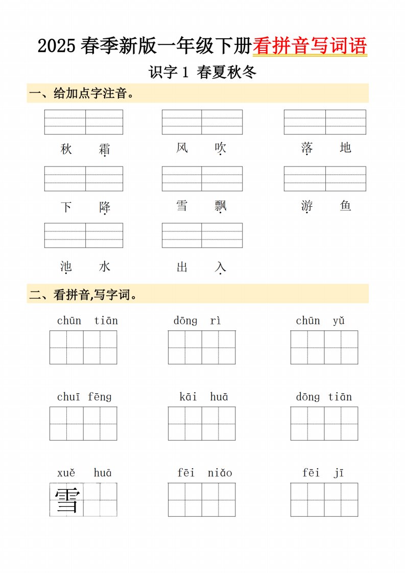 当前位置: 首页小学资源小学一年级正文 2025春季新版一年级下册语文看拼音写词语_共28页 小学一年级 2 周前 0 0 15 以上为部分内容预览,如需源文档请登录您的会员账号进行下载! 声明:本站所有文章,如无特殊说明或标注,均为本站原创发布。任何个人或组织,在未征得本站同意时,禁止复制、盗用、采集、发布本站内容到任何网站、书籍等各类媒体平台。如若本站内容侵犯了原著者的合法权益,可联系我们进行处理。 尚学资源永久会员 打赏 收藏 海报 链接