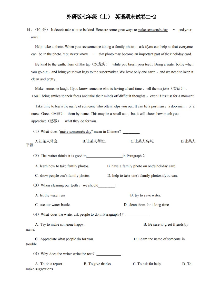 当前位置: 首页初中资源初中七年级正文 七年级(上)英语期末试卷2-2卷外研版_共7页 初中七年级 5 天前 0 0 5 以上为部分内容预览,如需源文档请登录您的会员账号进行下载! 声明:本站所有文章,如无特殊说明或标注,均为本站原创发布。任何个人或组织,在未征得本站同意时,禁止复制、盗用、采集、发布本站内容到任何网站、书籍等各类媒体平台。如若本站内容侵犯了原著者的合法权益,可联系我们进行处理。 尚学资源永久会员 打赏 收藏 海报 链接