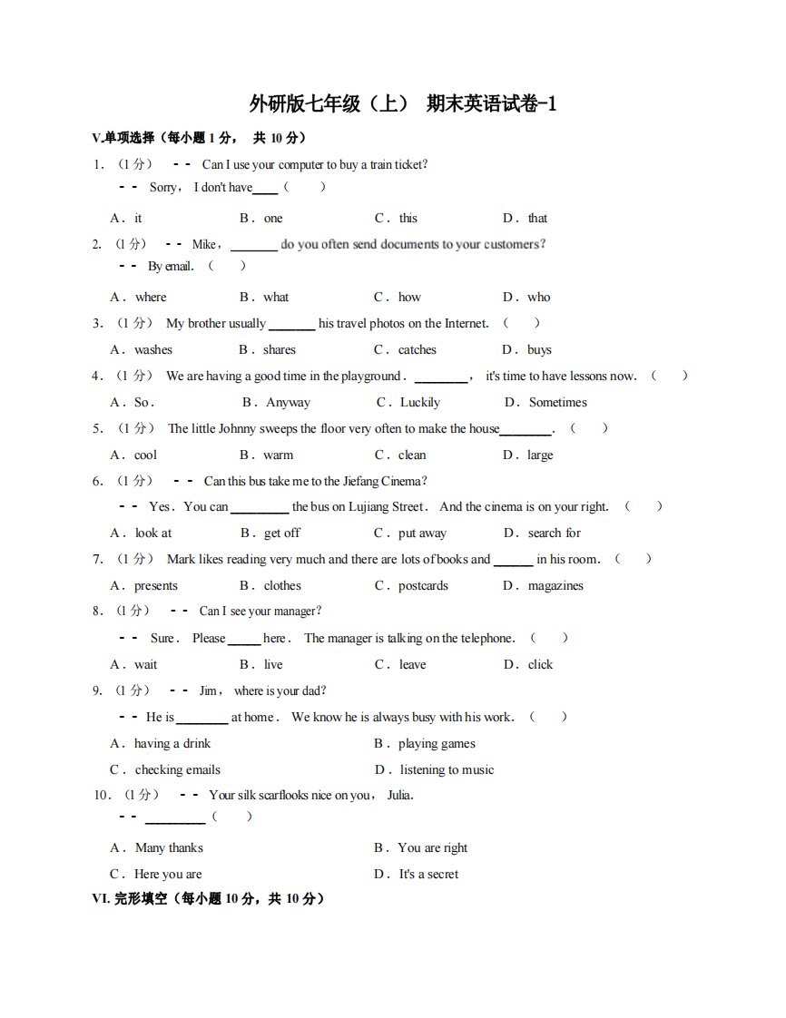 当前位置: 首页初中资源初中七年级正文 七年级(上)英语期末试卷5-1卷外研版_共12页 初中七年级 5 天前 0 0 10 以上为部分内容预览,如需源文档请登录您的会员账号进行下载! 声明:本站所有文章,如无特殊说明或标注,均为本站原创发布。任何个人或组织,在未征得本站同意时,禁止复制、盗用、采集、发布本站内容到任何网站、书籍等各类媒体平台。如若本站内容侵犯了原著者的合法权益,可联系我们进行处理。 尚学资源永久会员 打赏 收藏 海报 链接