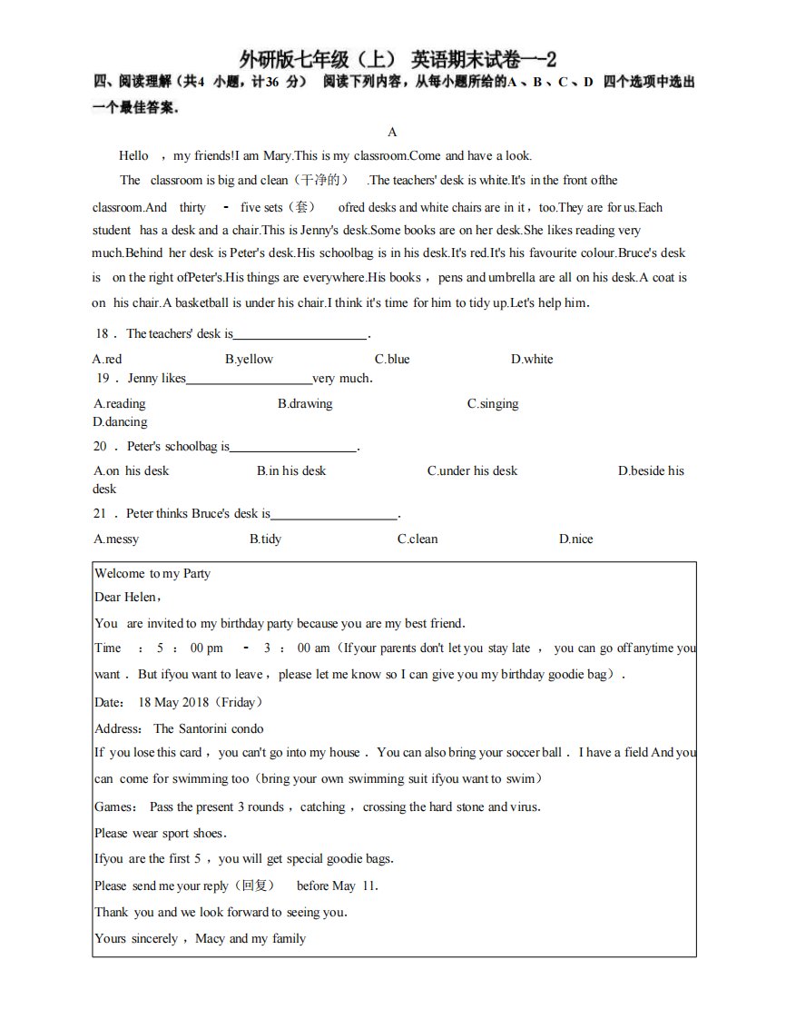 当前位置: 首页初中资源初中七年级正文 七年级(上)英语期末试卷1-2卷外研版_共8页 初中七年级 5 天前 0 0 5 以上为部分内容预览,如需源文档请登录您的会员账号进行下载! 声明:本站所有文章,如无特殊说明或标注,均为本站原创发布。任何个人或组织,在未征得本站同意时,禁止复制、盗用、采集、发布本站内容到任何网站、书籍等各类媒体平台。如若本站内容侵犯了原著者的合法权益,可联系我们进行处理。 尚学资源永久会员 打赏 收藏 海报 链接