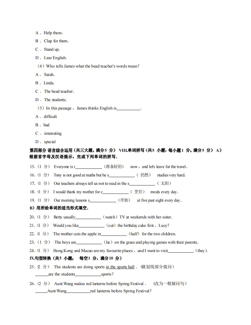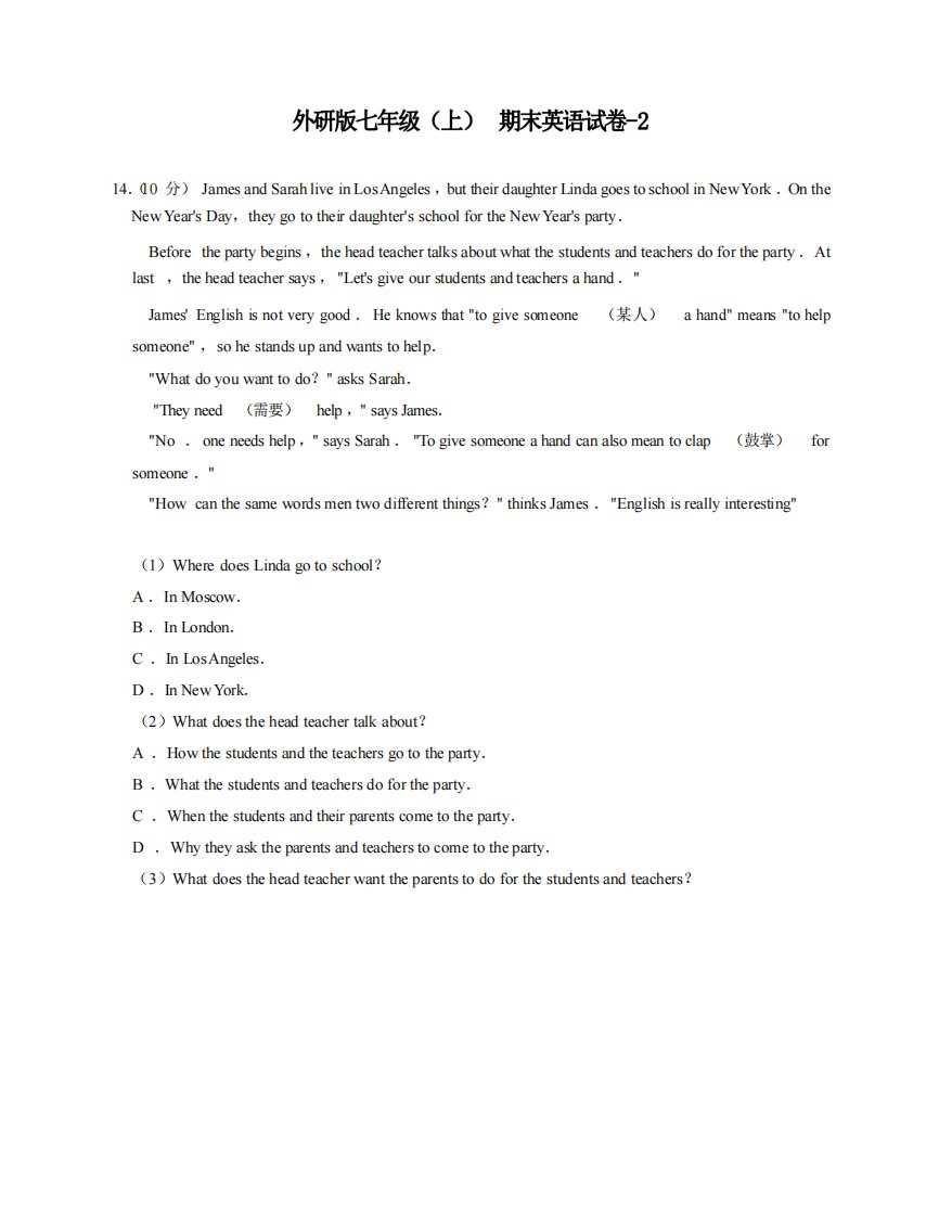七年级(上)英语期末试卷5-2卷外研版_共8页