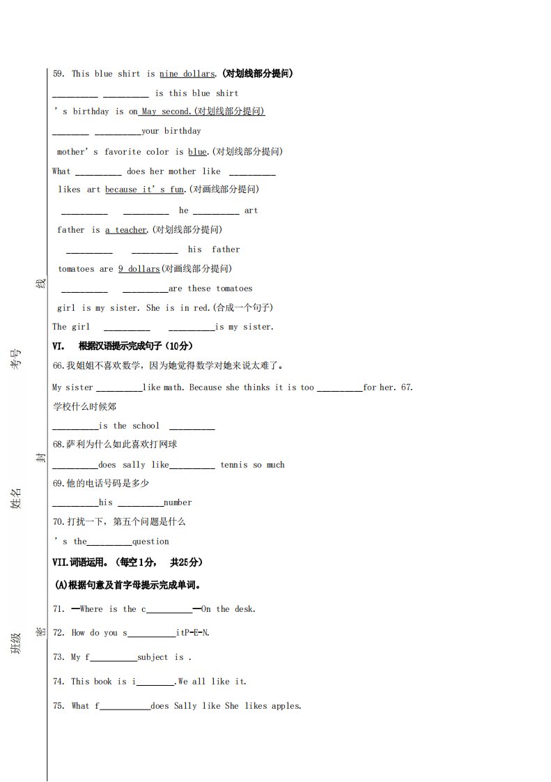 七年级(上)英语期末试卷5-2卷人教版_共4页