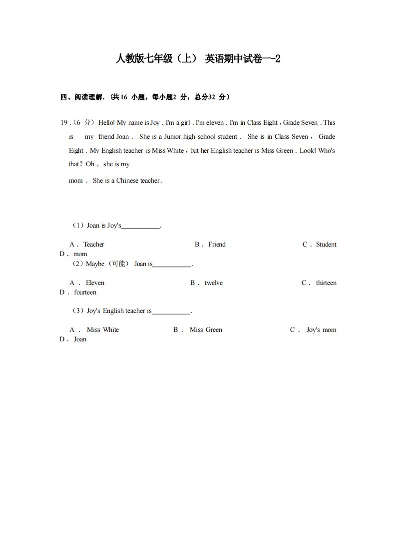 当前位置: 首页初中资源初中七年级正文 七年级(上)英语期中试卷1-2卷人教版_共9页 初中七年级 5 天前 0 0 5 以上为部分内容预览,如需源文档请登录您的会员账号进行下载! 声明:本站所有文章,如无特殊说明或标注,均为本站原创发布。任何个人或组织,在未征得本站同意时,禁止复制、盗用、采集、发布本站内容到任何网站、书籍等各类媒体平台。如若本站内容侵犯了原著者的合法权益,可联系我们进行处理。 尚学资源永久会员 打赏 收藏 海报 链接