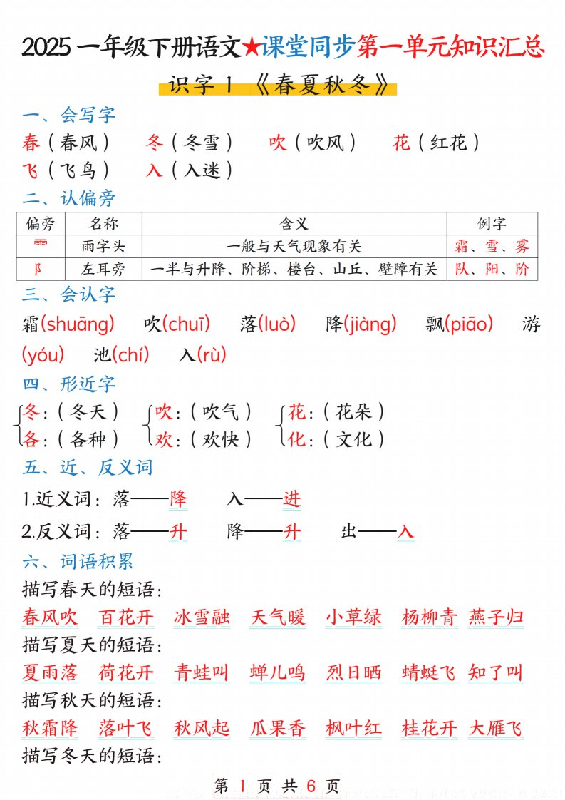 当前位置: 首页小学资源小学一年级正文 25春一下语文★课堂同步第一单元知识汇总(6页)_共6页 小学一年级 2 周前 0 0 5 以上为部分内容预览,如需源文档请登录您的会员账号进行下载! 声明:本站所有文章,如无特殊说明或标注,均为本站原创发布。任何个人或组织,在未征得本站同意时,禁止复制、盗用、采集、发布本站内容到任何网站、书籍等各类媒体平台。如若本站内容侵犯了原著者的合法权益,可联系我们进行处理。 尚学资源永久会员 打赏 收藏 海报 链接