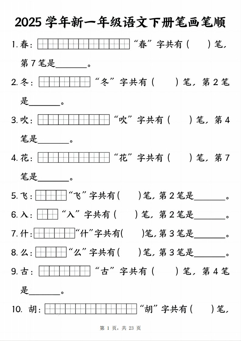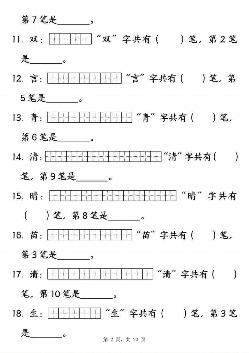 25春新一下语文笔画笔顺专项练习(23页)_共23页