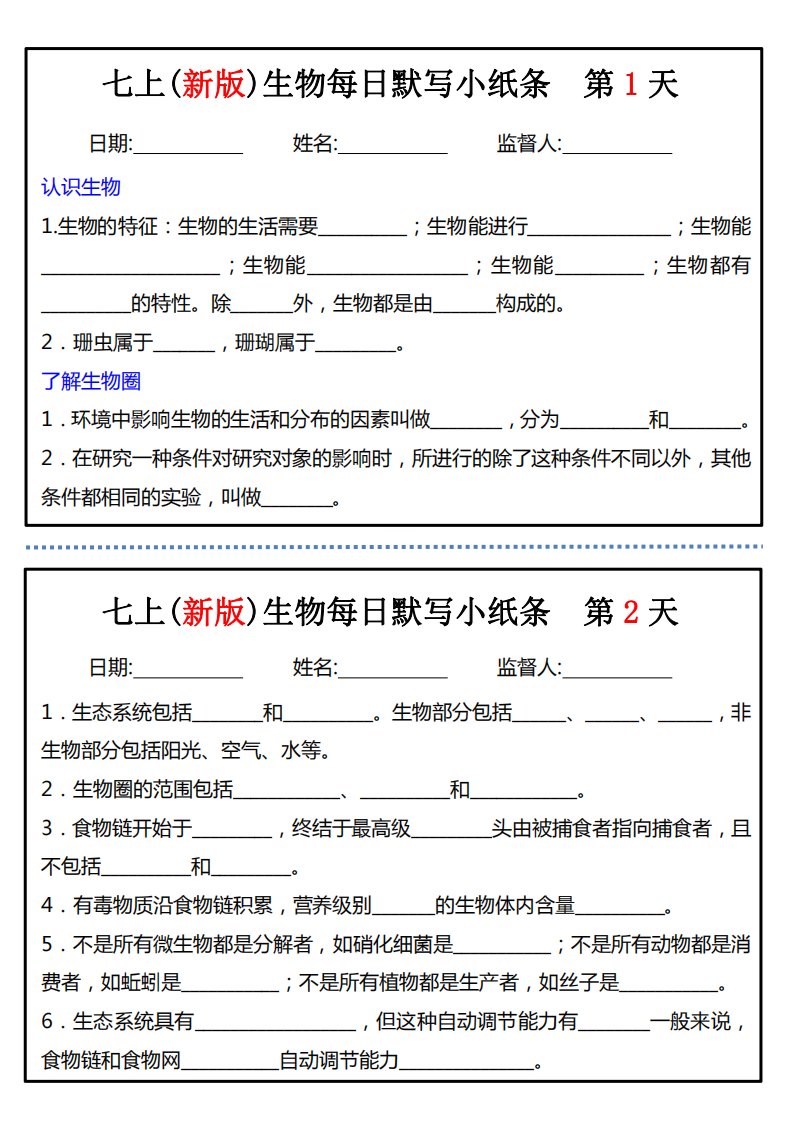 当前位置: 首页初中资源初中七年级正文 七上(新版)生物每日默写小纸条_共12页 初中七年级 4 天前 0 0 10 以上为部分内容预览,如需源文档请登录您的会员账号进行下载! 声明:本站所有文章,如无特殊说明或标注,均为本站原创发布。任何个人或组织,在未征得本站同意时,禁止复制、盗用、采集、发布本站内容到任何网站、书籍等各类媒体平台。如若本站内容侵犯了原著者的合法权益,可联系我们进行处理。 尚学资源永久会员 打赏 收藏 海报 链接