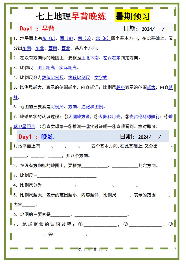 当前位置: 首页初中资源初中七年级正文 七上地理早背晚练_共19页 初中七年级 4 天前 0 0 10 以上为部分内容预览,如需源文档请登录您的会员账号进行下载! 声明:本站所有文章,如无特殊说明或标注,均为本站原创发布。任何个人或组织,在未征得本站同意时,禁止复制、盗用、采集、发布本站内容到任何网站、书籍等各类媒体平台。如若本站内容侵犯了原著者的合法权益,可联系我们进行处理。 尚学资源永久会员 打赏 收藏 海报 链接