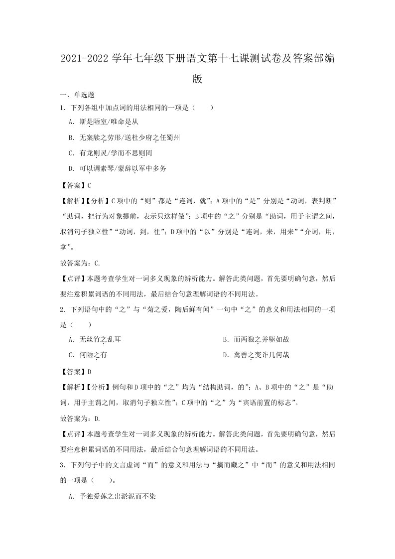 当前位置: 首页初中资源初中七年级正文 2021-2022学年七年级下册语文第十七课测试卷及答案部编版(Word版)_共13页 初中七年级 5 天前 0 0 10 以上为部分内容预览,如需源文档请登录您的会员账号进行下载! 声明:本站所有文章,如无特殊说明或标注,均为本站原创发布。任何个人或组织,在未征得本站同意时,禁止复制、盗用、采集、发布本站内容到任何网站、书籍等各类媒体平台。如若本站内容侵犯了原著者的合法权益,可联系我们进行处理。 尚学资源永久会员 打赏 收藏 海报 链接