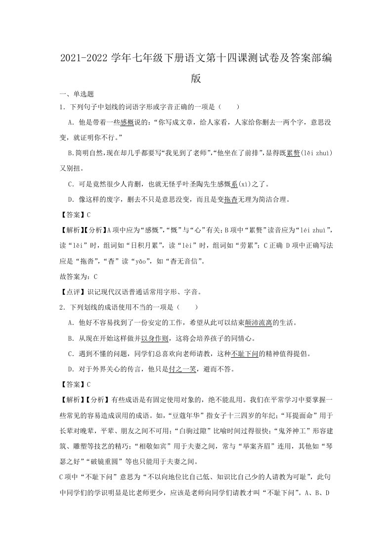 当前位置: 首页初中资源初中七年级正文 2021-2022学年七年级下册语文第十四课测试卷及答案部编版(Word版)_共11页 初中七年级 5 天前 0 0 10 以上为部分内容预览,如需源文档请登录您的会员账号进行下载! 声明:本站所有文章,如无特殊说明或标注,均为本站原创发布。任何个人或组织,在未征得本站同意时,禁止复制、盗用、采集、发布本站内容到任何网站、书籍等各类媒体平台。如若本站内容侵犯了原著者的合法权益,可联系我们进行处理。 尚学资源永久会员 打赏 收藏 海报 链接