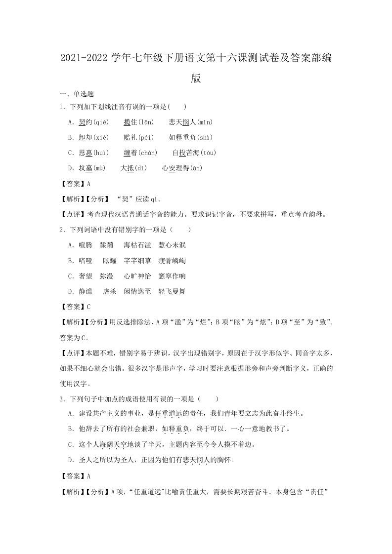 当前位置: 首页初中资源初中七年级正文 2021-2022学年七年级下册语文第十六课测试卷及答案部编版(Word版)_共9页 初中七年级 5 天前 0 0 5 以上为部分内容预览,如需源文档请登录您的会员账号进行下载! 声明:本站所有文章,如无特殊说明或标注,均为本站原创发布。任何个人或组织,在未征得本站同意时,禁止复制、盗用、采集、发布本站内容到任何网站、书籍等各类媒体平台。如若本站内容侵犯了原著者的合法权益,可联系我们进行处理。 尚学资源永久会员 打赏 收藏 海报 链接