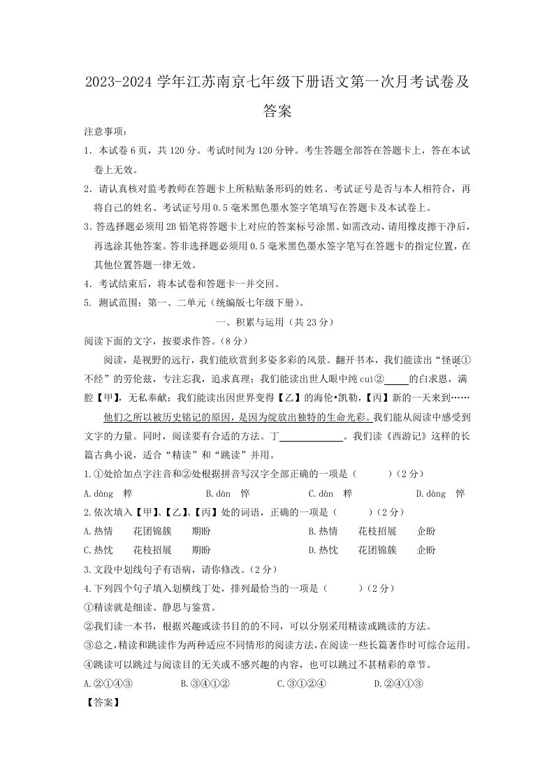 当前位置: 首页初中资源初中七年级正文 2023-2024学年江苏南京七年级下册语文第一次月考试卷及答案(Word版)_共14页 初中七年级 4 天前 0 0 10 以上为部分内容预览,如需源文档请登录您的会员账号进行下载! 声明:本站所有文章,如无特殊说明或标注,均为本站原创发布。任何个人或组织,在未征得本站同意时,禁止复制、盗用、采集、发布本站内容到任何网站、书籍等各类媒体平台。如若本站内容侵犯了原著者的合法权益,可联系我们进行处理。 尚学资源永久会员 打赏 收藏 海报 链接