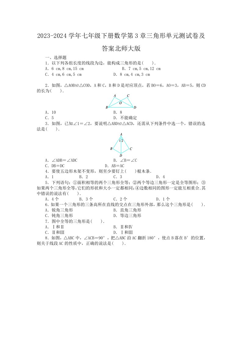 当前位置: 首页初中资源初中七年级正文 2023-2024学年七年级下册数学第3章三角形单元测试卷及答案北师大版(Word版)_共37页 初中七年级 5 天前 0 0 15 以上为部分内容预览,如需源文档请登录您的会员账号进行下载! 声明:本站所有文章,如无特殊说明或标注,均为本站原创发布。任何个人或组织,在未征得本站同意时,禁止复制、盗用、采集、发布本站内容到任何网站、书籍等各类媒体平台。如若本站内容侵犯了原著者的合法权益,可联系我们进行处理。 尚学资源永久会员 打赏 收藏 海报 链接