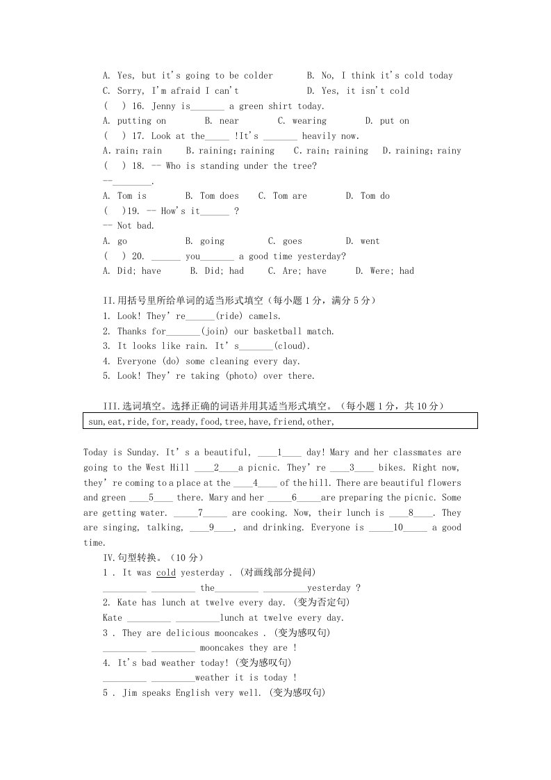 当前位置: 首页初中资源初中七年级正文 2022-2023学年七年级下册英语Unit7单元测试卷及答案新人教版(Word版)_共10页 初中七年级 4 天前 0 0 5 以上为部分内容预览,如需源文档请登录您的会员账号进行下载! 声明:本站所有文章,如无特殊说明或标注,均为本站原创发布。任何个人或组织,在未征得本站同意时,禁止复制、盗用、采集、发布本站内容到任何网站、书籍等各类媒体平台。如若本站内容侵犯了原著者的合法权益,可联系我们进行处理。 尚学资源永久会员 打赏 收藏 海报 链接