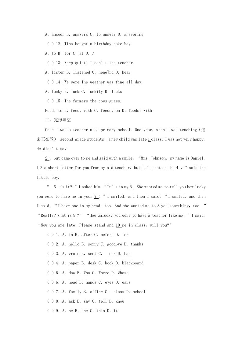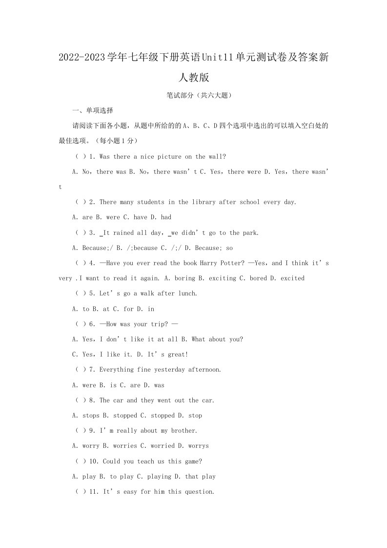 当前位置: 首页初中资源初中七年级正文 2022-2023学年七年级下册英语Unit11单元测试卷及答案新人教版(Word版)_共11页 初中七年级 4 天前 0 0 10 以上为部分内容预览,如需源文档请登录您的会员账号进行下载! 声明:本站所有文章,如无特殊说明或标注,均为本站原创发布。任何个人或组织,在未征得本站同意时,禁止复制、盗用、采集、发布本站内容到任何网站、书籍等各类媒体平台。如若本站内容侵犯了原著者的合法权益,可联系我们进行处理。 尚学资源永久会员 打赏 收藏 海报 链接