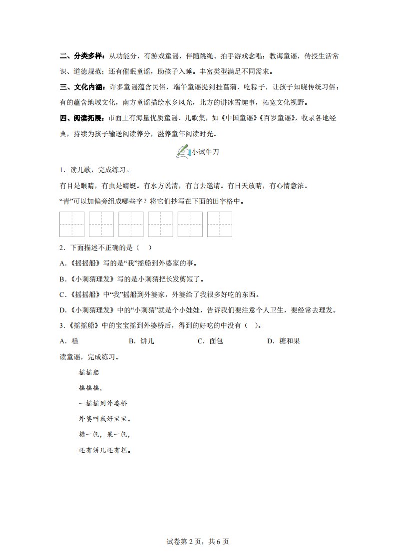 当前位置: 首页小学资源小学一年级正文 【同步练习】语文一年级下册第一单元快乐读书吧:读读童谣和儿歌练习卷_共10页 小学一年级 2 周前 0 0 5 以上为部分内容预览,如需源文档请登录您的会员账号进行下载! 声明:本站所有文章,如无特殊说明或标注,均为本站原创发布。任何个人或组织,在未征得本站同意时,禁止复制、盗用、采集、发布本站内容到任何网站、书籍等各类媒体平台。如若本站内容侵犯了原著者的合法权益,可联系我们进行处理。 尚学资源永久会员 打赏 收藏 海报 链接