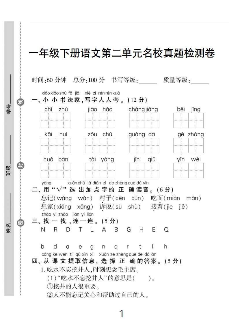 一下语文第二单元名校真题检测卷_共5页