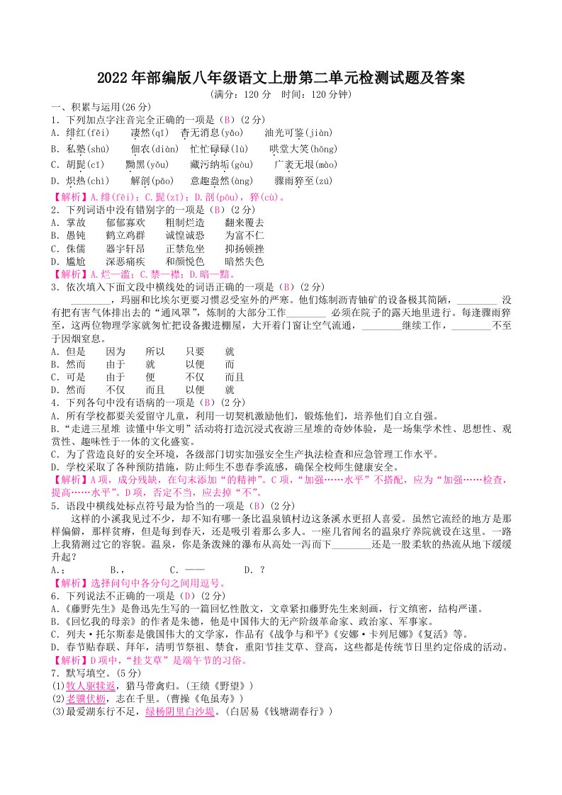 当前位置: 首页初中资源初中八年级正文 2022年部编版八年级语文上册第二单元检测试题及答案(Word版)_共6页 初中八年级 5 天前 0 0 5 以上为部分内容预览,如需源文档请登录您的会员账号进行下载! 声明:本站所有文章,如无特殊说明或标注,均为本站原创发布。任何个人或组织,在未征得本站同意时,禁止复制、盗用、采集、发布本站内容到任何网站、书籍等各类媒体平台。如若本站内容侵犯了原著者的合法权益,可联系我们进行处理。 尚学资源永久会员 打赏 收藏 海报 链接