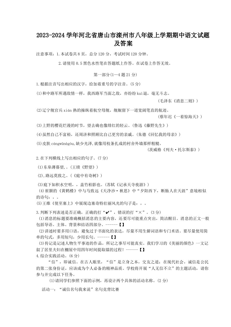 当前位置: 首页初中资源初中八年级正文 2023-2024学年河北省唐山市滦州市八年级上学期期中语文试题及答案(Word版)_共12页 初中八年级 4 天前 0 0 10 以上为部分内容预览,如需源文档请登录您的会员账号进行下载! 声明:本站所有文章,如无特殊说明或标注,均为本站原创发布。任何个人或组织,在未征得本站同意时,禁止复制、盗用、采集、发布本站内容到任何网站、书籍等各类媒体平台。如若本站内容侵犯了原著者的合法权益,可联系我们进行处理。 尚学资源永久会员 打赏 收藏 海报 链接