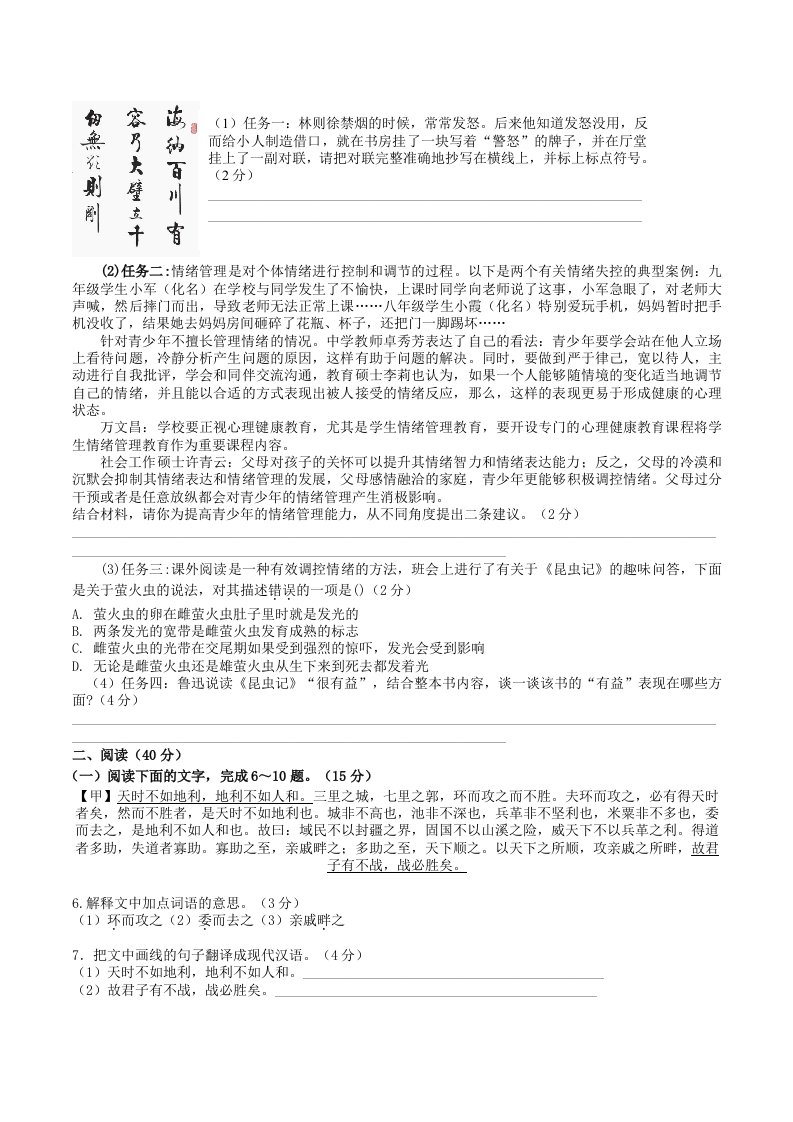 2023年部编版八年级语文上册第四六单元试卷及答案(Word版)_共7页