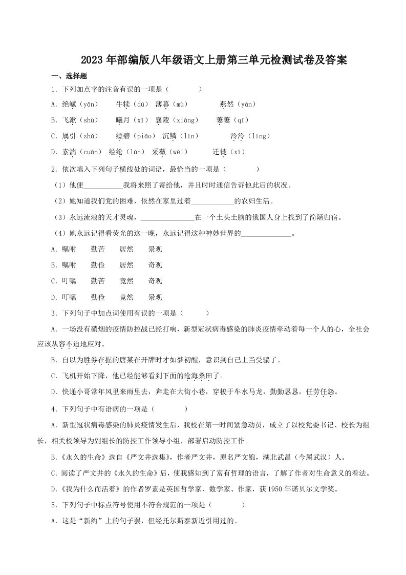 当前位置: 首页初中资源初中八年级正文 2023年部编版八年级语文上册第三单元检测试卷及答案(Word版)_共11页 初中八年级 4 天前 0 0 10 以上为部分内容预览,如需源文档请登录您的会员账号进行下载! 声明:本站所有文章,如无特殊说明或标注,均为本站原创发布。任何个人或组织,在未征得本站同意时,禁止复制、盗用、采集、发布本站内容到任何网站、书籍等各类媒体平台。如若本站内容侵犯了原著者的合法权益,可联系我们进行处理。 尚学资源永久会员 打赏 收藏 海报 链接