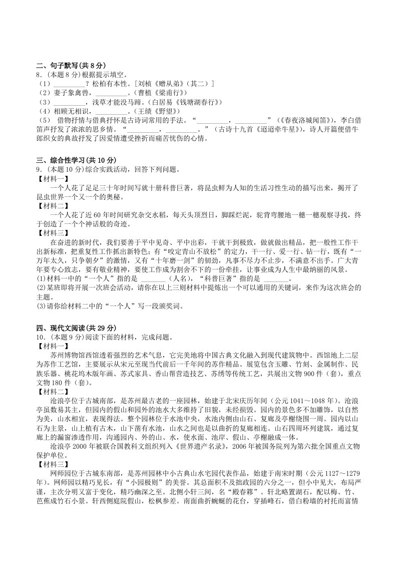 当前位置: 首页初中资源初中八年级正文 2022-2023学年部编版八年级语文上册第五单元学习质量检测试卷及答案(Word版)_共6页 初中八年级 4 天前 0 0 5 以上为部分内容预览,如需源文档请登录您的会员账号进行下载! 声明:本站所有文章,如无特殊说明或标注,均为本站原创发布。任何个人或组织,在未征得本站同意时,禁止复制、盗用、采集、发布本站内容到任何网站、书籍等各类媒体平台。如若本站内容侵犯了原著者的合法权益,可联系我们进行处理。 尚学资源永久会员 打赏 收藏 海报 链接