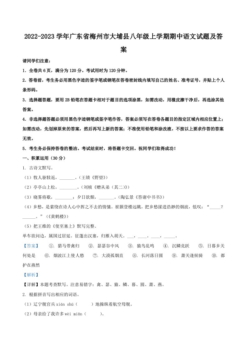 当前位置: 首页初中资源初中八年级正文 2022-2023学年广东省梅州市大埔县八年级上学期期中语文试题及答案(Word版)_共14页 初中八年级 4 天前 0 0 10 以上为部分内容预览,如需源文档请登录您的会员账号进行下载! 声明:本站所有文章,如无特殊说明或标注,均为本站原创发布。任何个人或组织,在未征得本站同意时,禁止复制、盗用、采集、发布本站内容到任何网站、书籍等各类媒体平台。如若本站内容侵犯了原著者的合法权益,可联系我们进行处理。 尚学资源永久会员 打赏 收藏 海报 链接