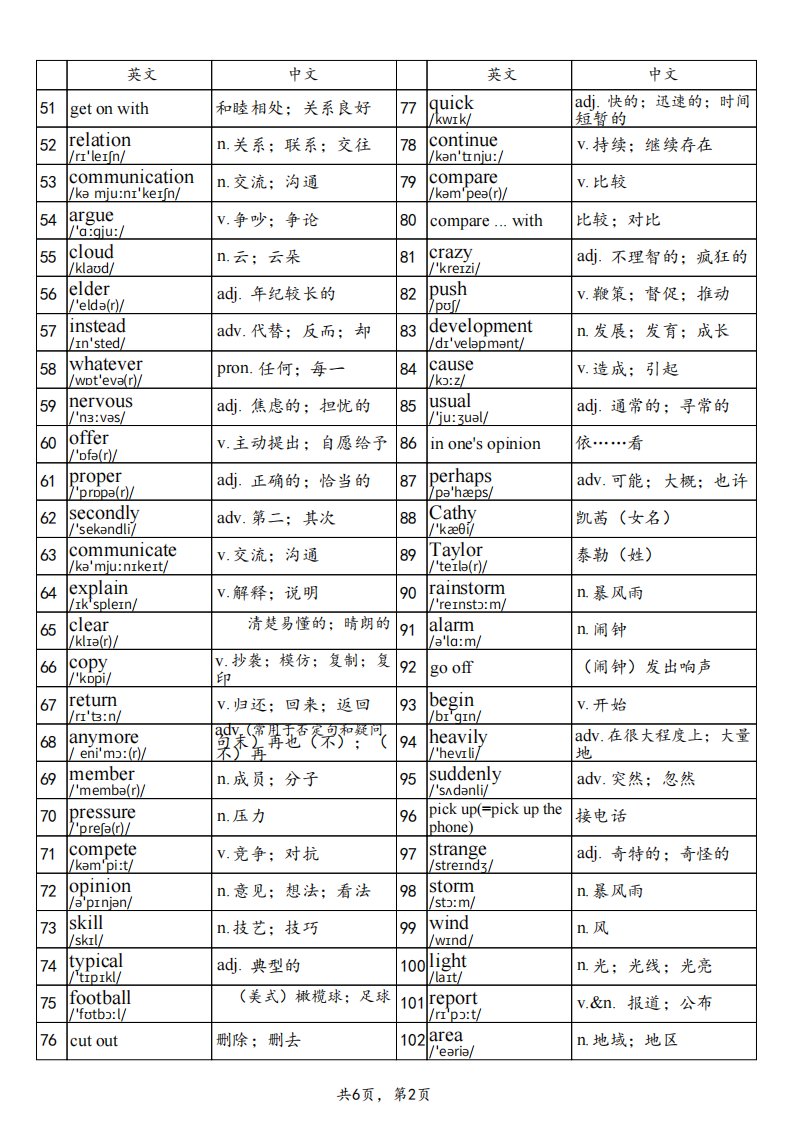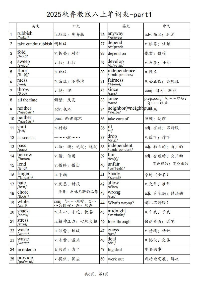 当前位置: 首页初中资源初中八年级正文 2025秋鲁教版八上英语单词表-part1_共6页 初中八年级 5 天前 0 0 5 以上为部分内容预览,如需源文档请登录您的会员账号进行下载! 声明:本站所有文章,如无特殊说明或标注,均为本站原创发布。任何个人或组织,在未征得本站同意时,禁止复制、盗用、采集、发布本站内容到任何网站、书籍等各类媒体平台。如若本站内容侵犯了原著者的合法权益,可联系我们进行处理。 尚学资源永久会员 打赏 收藏 海报 链接