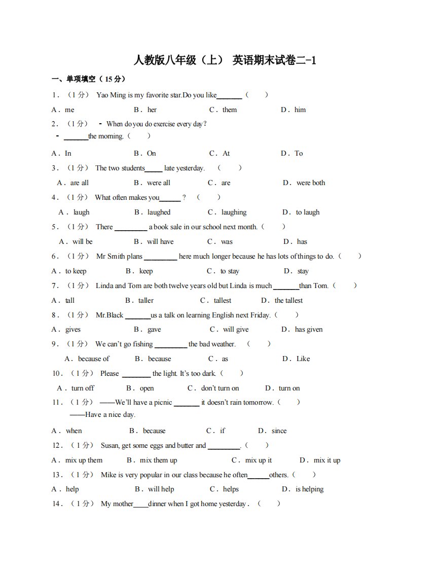 当前位置: 首页初中资源初中八年级正文 八年级(上)英语期末试卷2-1卷人教版_共8页 初中八年级 4 天前 0 0 5 以上为部分内容预览,如需源文档请登录您的会员账号进行下载! 声明:本站所有文章,如无特殊说明或标注,均为本站原创发布。任何个人或组织,在未征得本站同意时,禁止复制、盗用、采集、发布本站内容到任何网站、书籍等各类媒体平台。如若本站内容侵犯了原著者的合法权益,可联系我们进行处理。 尚学资源永久会员 打赏 收藏 海报 链接