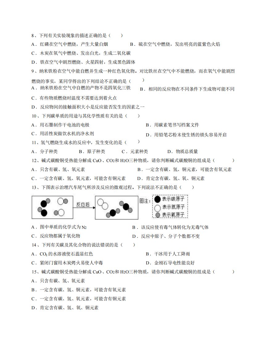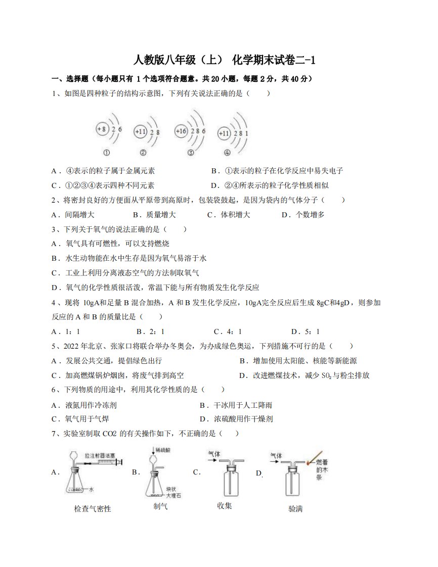 八年级(上)化学期末试卷2-1卷人教版_共4页