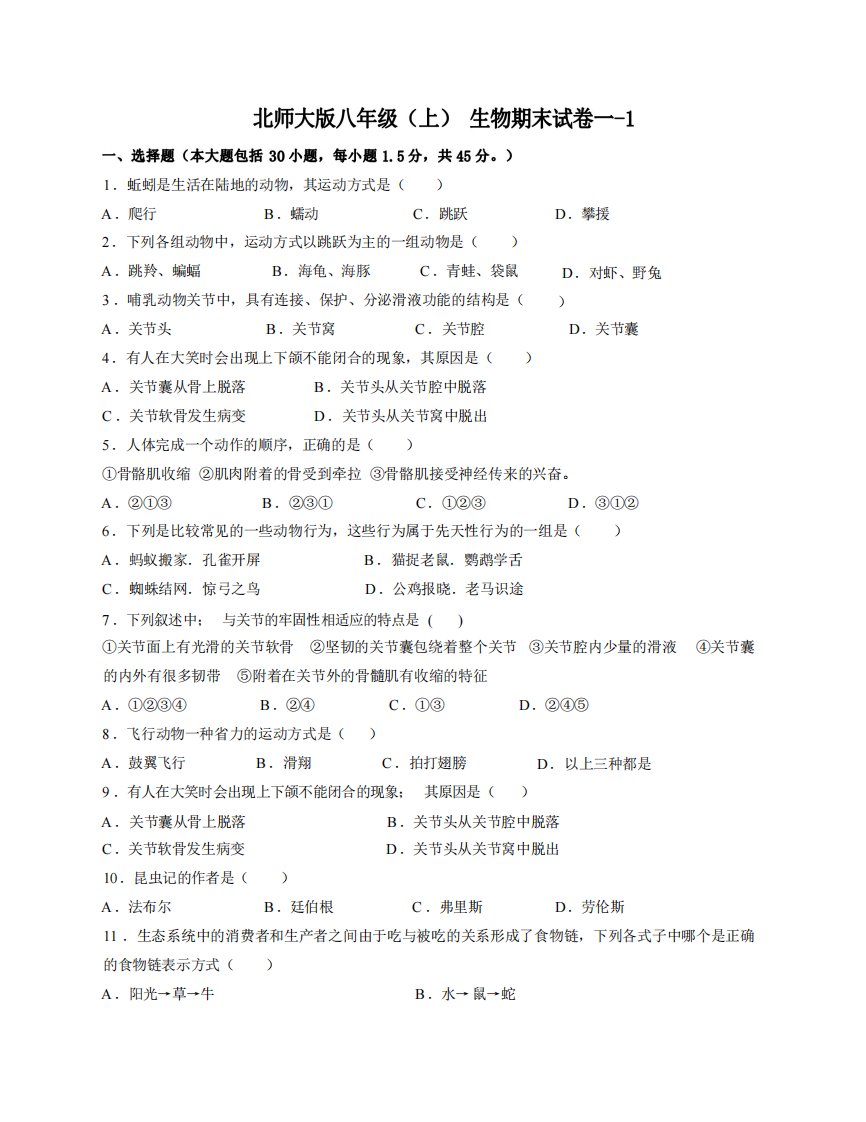 当前位置: 首页初中资源初中八年级正文 八年级(上)生物期末试卷1-1卷北师大版_共9页 初中八年级 4 天前 0 0 5 以上为部分内容预览,如需源文档请登录您的会员账号进行下载! 声明:本站所有文章,如无特殊说明或标注,均为本站原创发布。任何个人或组织,在未征得本站同意时,禁止复制、盗用、采集、发布本站内容到任何网站、书籍等各类媒体平台。如若本站内容侵犯了原著者的合法权益,可联系我们进行处理。 尚学资源永久会员 打赏 收藏 海报 链接
