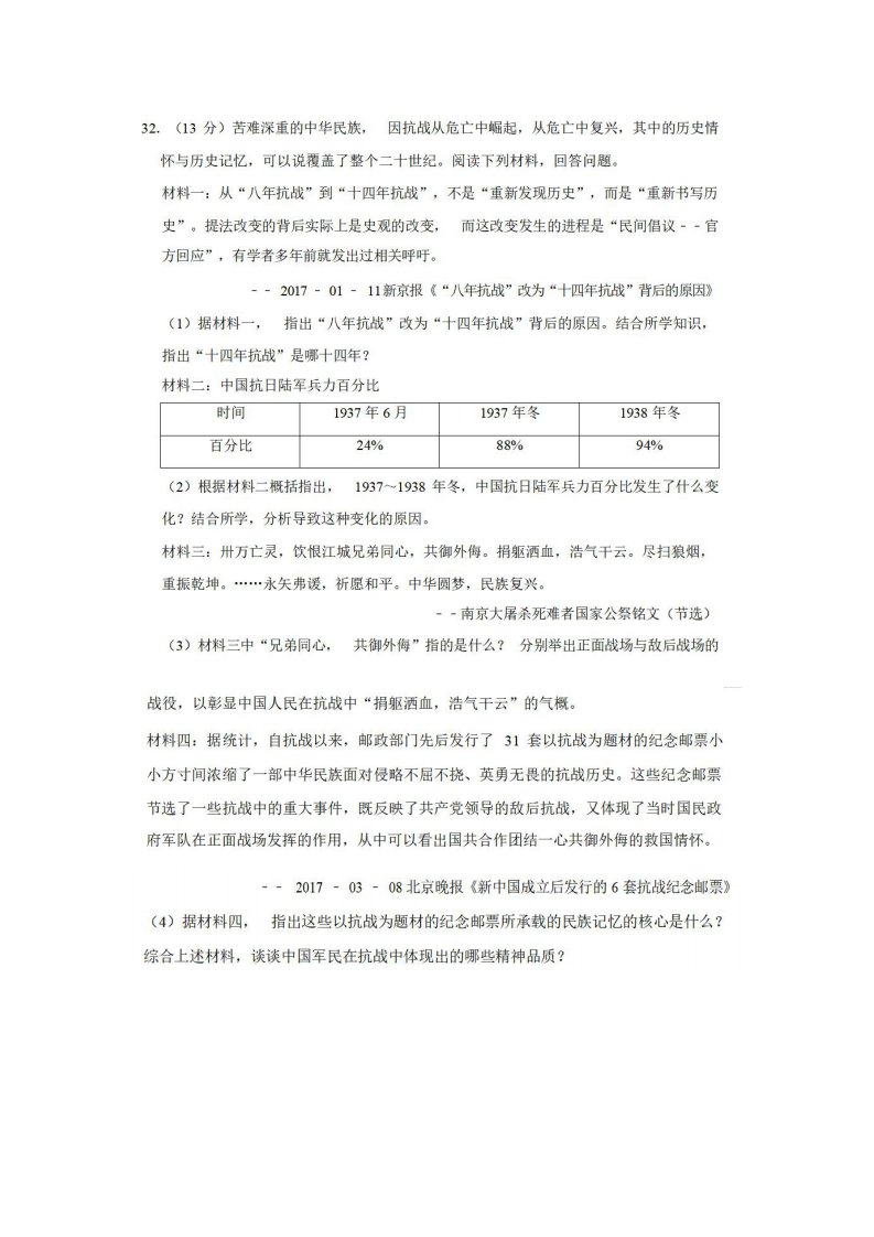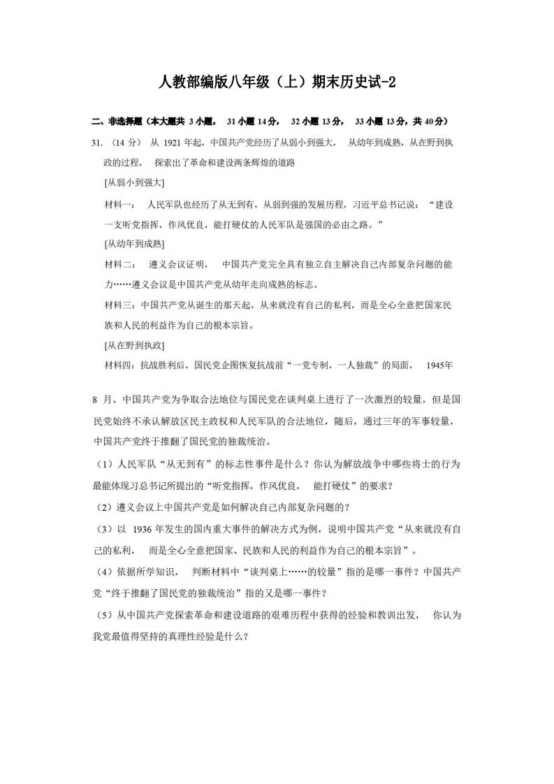 八年级(上)历史期末试卷3-2卷人教部编版_共9页