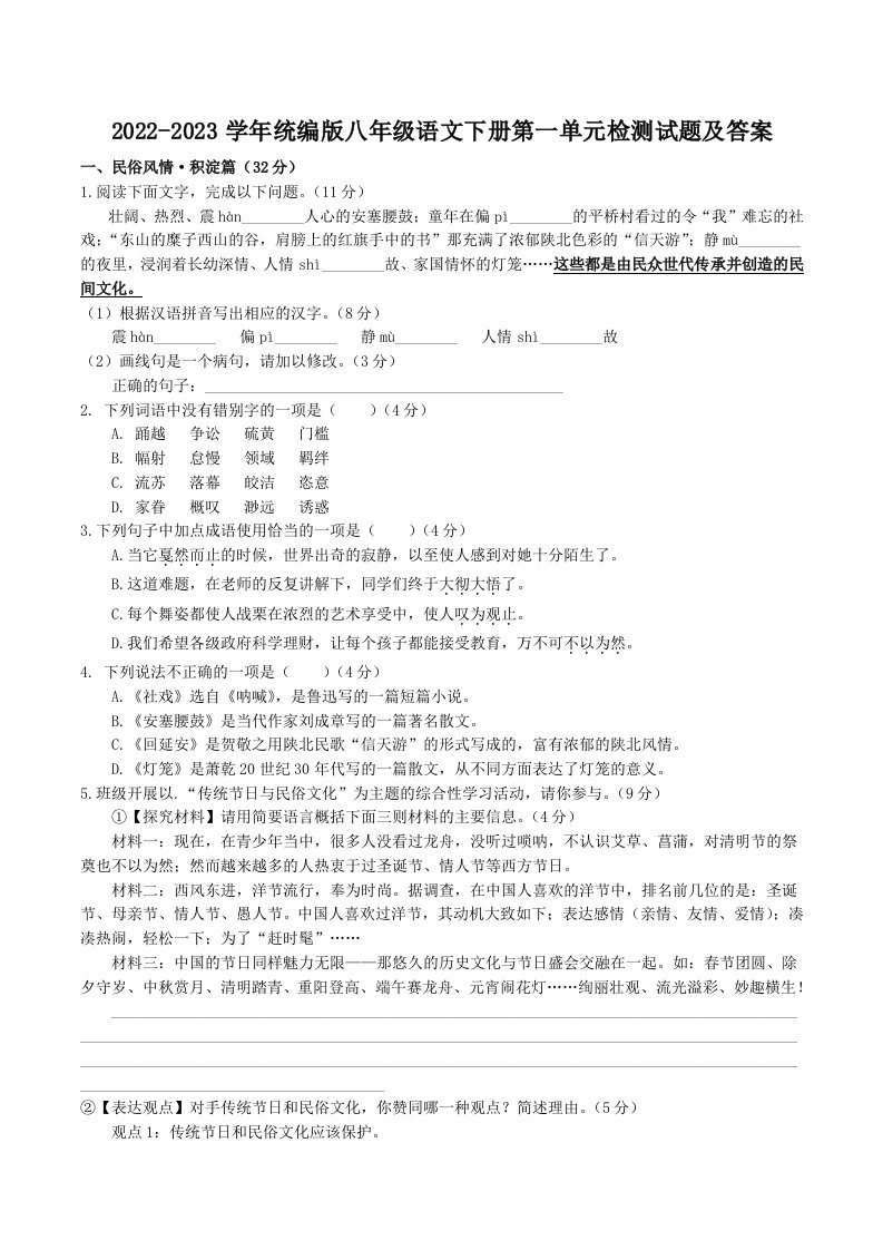 当前位置: 首页初中资源初中八年级正文 2022-2023学年统编版八年级语文下册第一单元检测试题及答案(Word版)_共6页 初中八年级 5 天前 0 0 5 以上为部分内容预览,如需源文档请登录您的会员账号进行下载! 声明:本站所有文章,如无特殊说明或标注,均为本站原创发布。任何个人或组织,在未征得本站同意时,禁止复制、盗用、采集、发布本站内容到任何网站、书籍等各类媒体平台。如若本站内容侵犯了原著者的合法权益,可联系我们进行处理。 尚学资源永久会员 打赏 收藏 海报 链接