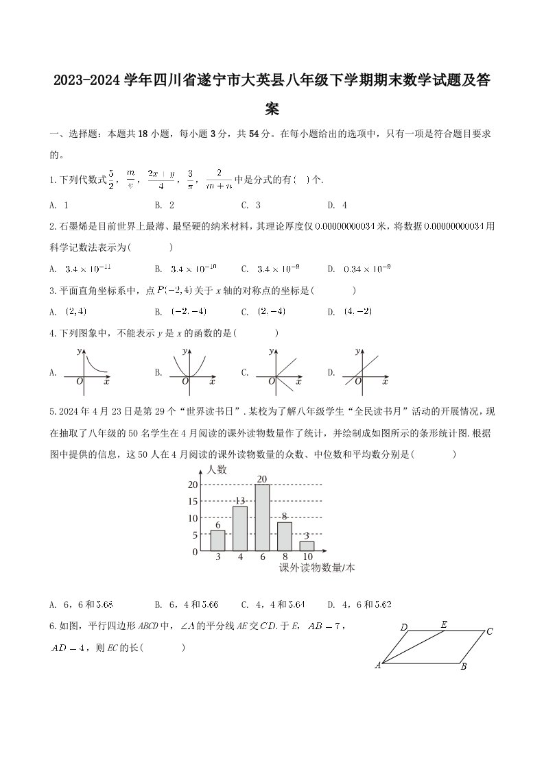 当前位置: 首页初中资源初中八年级正文 2023-2024学年四川省遂宁市大英县八年级下学期期末数学试题及答案(Word版)_共26页 初中八年级 4 天前 0 0 15 以上为部分内容预览,如需源文档请登录您的会员账号进行下载! 声明:本站所有文章,如无特殊说明或标注,均为本站原创发布。任何个人或组织,在未征得本站同意时,禁止复制、盗用、采集、发布本站内容到任何网站、书籍等各类媒体平台。如若本站内容侵犯了原著者的合法权益,可联系我们进行处理。 尚学资源永久会员 打赏 收藏 海报 链接