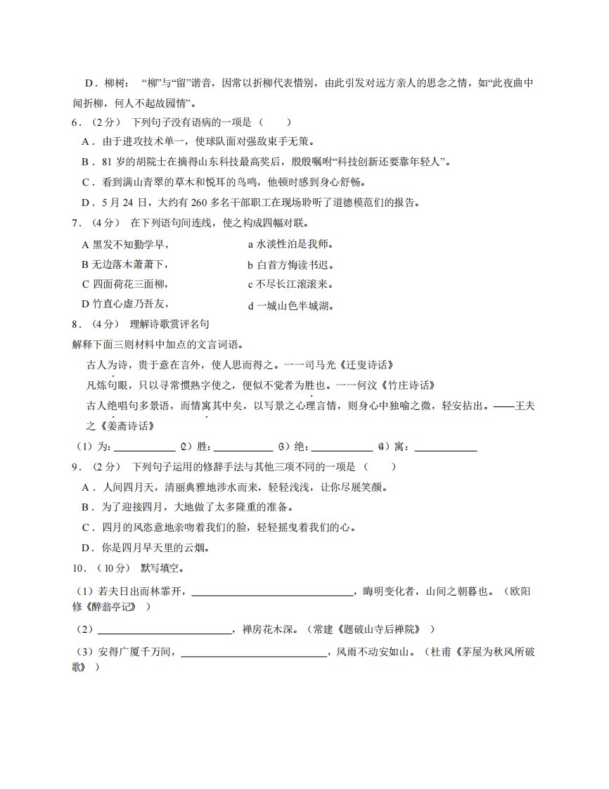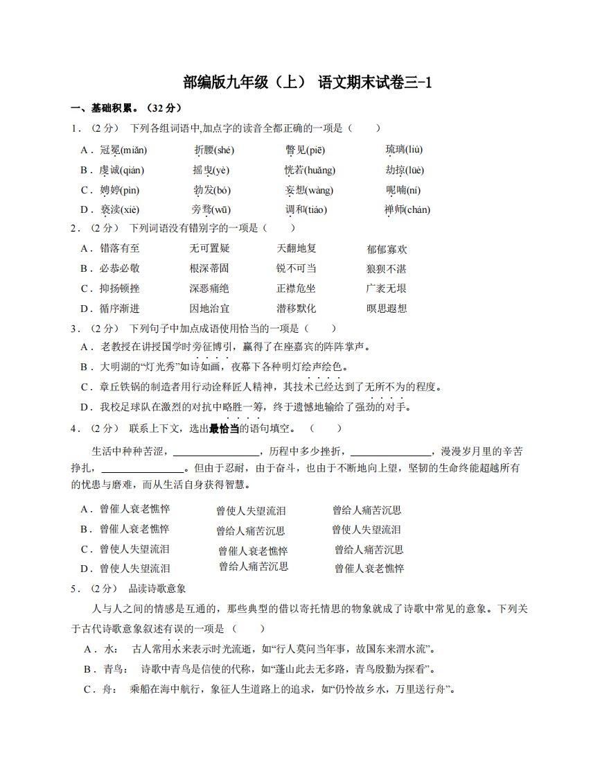 当前位置: 首页初中资源初中九年级正文 九年级(上)语文期末试卷3-1卷部编版_共9页 初中九年级 4 天前 0 0 5 以上为部分内容预览,如需源文档请登录您的会员账号进行下载! 声明:本站所有文章,如无特殊说明或标注,均为本站原创发布。任何个人或组织,在未征得本站同意时,禁止复制、盗用、采集、发布本站内容到任何网站、书籍等各类媒体平台。如若本站内容侵犯了原著者的合法权益,可联系我们进行处理。 尚学资源永久会员 打赏 收藏 海报 链接